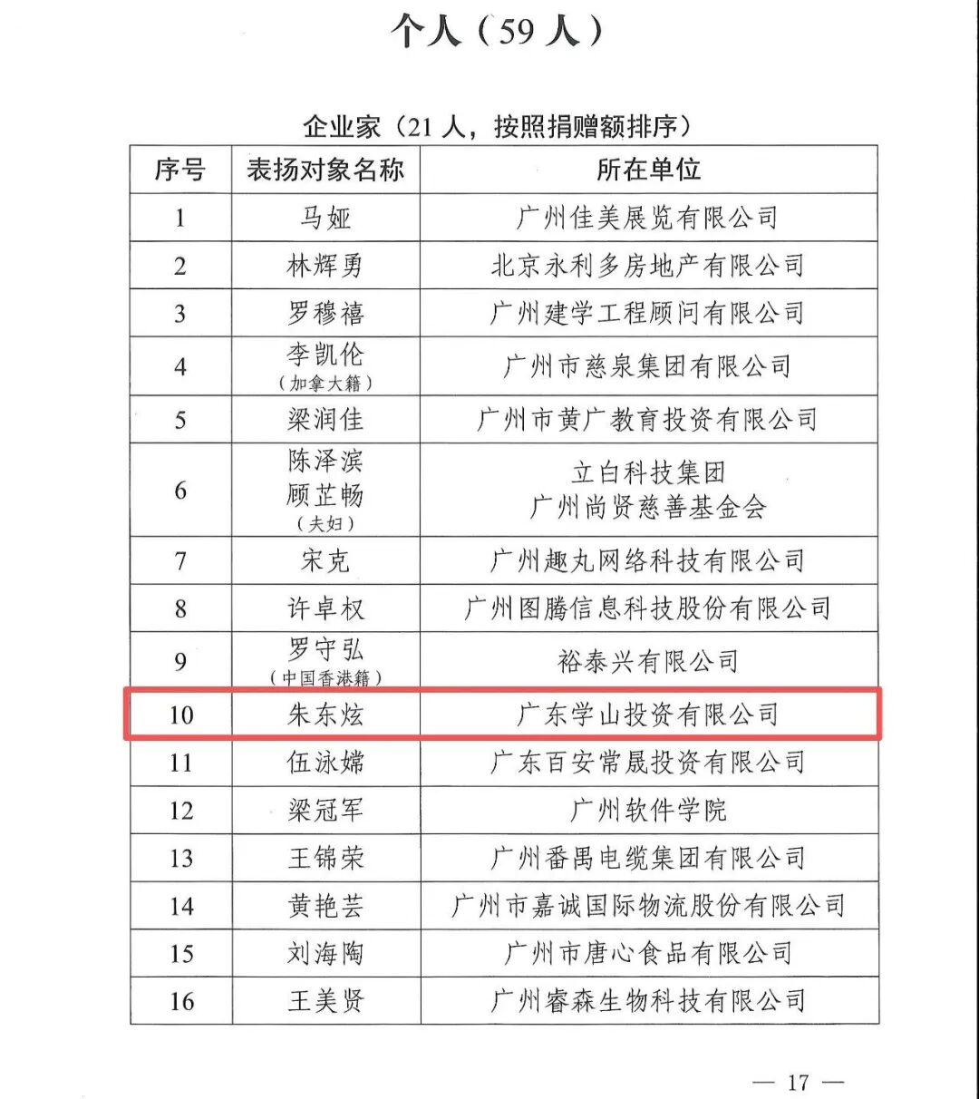 近日,广州市人民政府发布通报,对2023-2024年度公益慈善领域表现突出的300个集体和个人予以表彰,旨在深入贯彻党的二十大精神与习近平总书记关于慈善事业的重要指示,擦亮广州“慈善之城”名片,凝聚社会向善力量。广东省福建商会秘书长、广东学山投资有限公司董事长朱东炫凭借在公益慈善领域的扎实践行与突出贡献,获评先进个人。