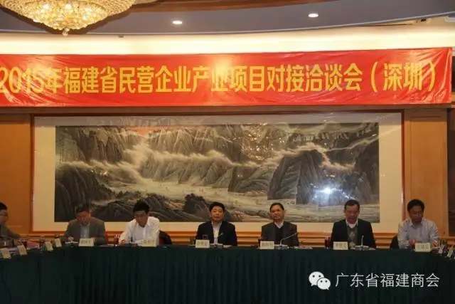 2015年2月4日,福建省民营企业产业项目对接洽谈会在深圳五洲宾馆长江厅举行。福建省经济和信息化委员会副主任郭恒明出席活动并致辞,福建省设区市、平潭综合实验区负责民企对接领导,福建省政府驻广办、驻深办领导,广东省福建商会创会会长、信义集团董事局主席李贤义,广东省福建商会会长、香缤控股集团董事局主席许明金,广东省福建商会监事长、永隆实业集团董事长王诗增及广东省福建商会、深圳市福建商会等相关企业家近百人出席活动。