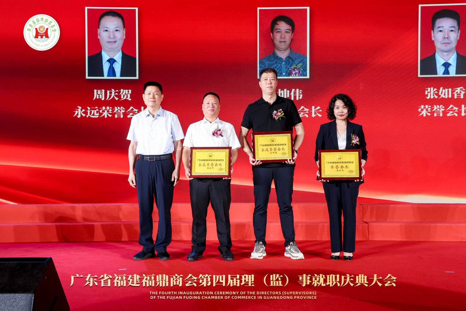 会上还举行了授牌仪式。广东省福建商会秘书长朱东炫荣任广东省福建福鼎商会名誉会长,广东省福建商会副会长周庆贺荣任广东省福建福鼎商会永远荣誉会长。