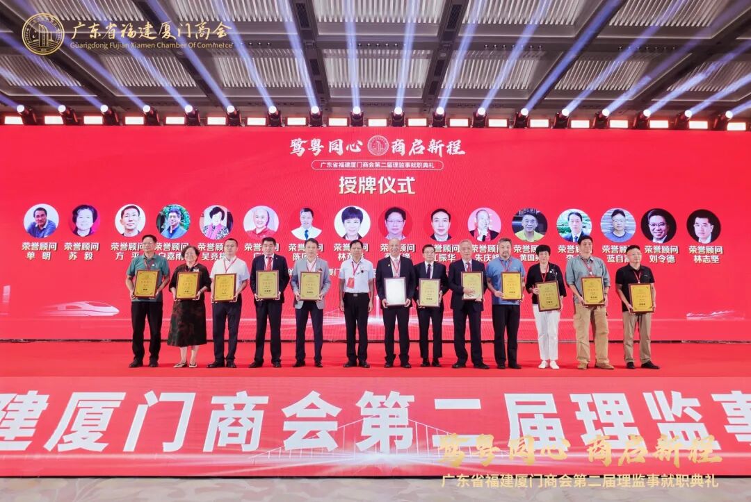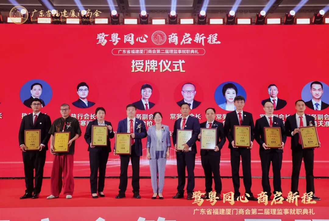 典礼上举行了授牌仪式,为新一届理监事会成员颁发牌匾,标志着商会工作迈入新阶段。