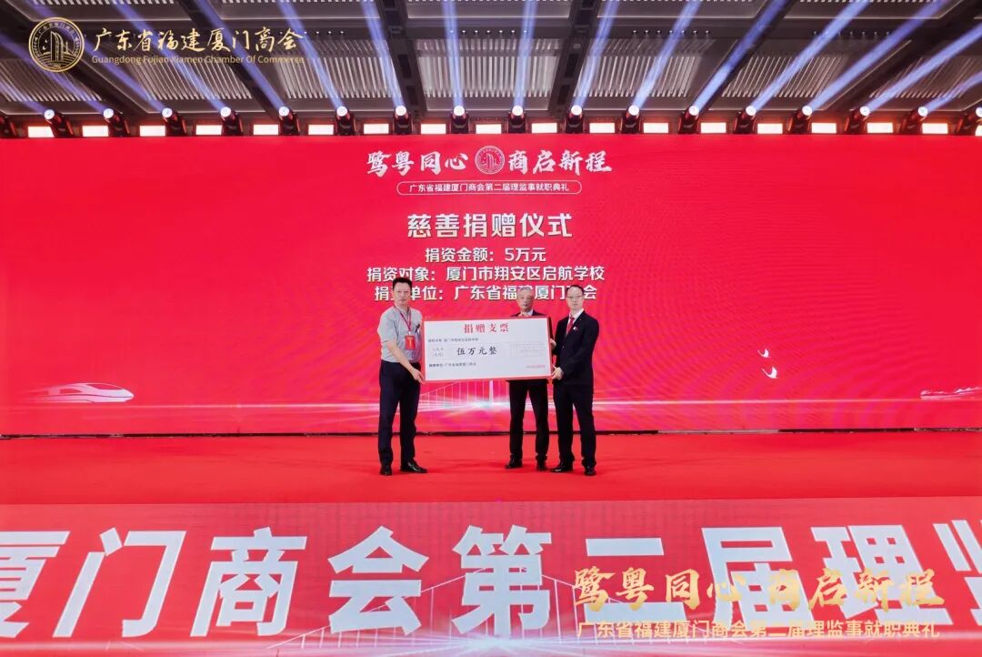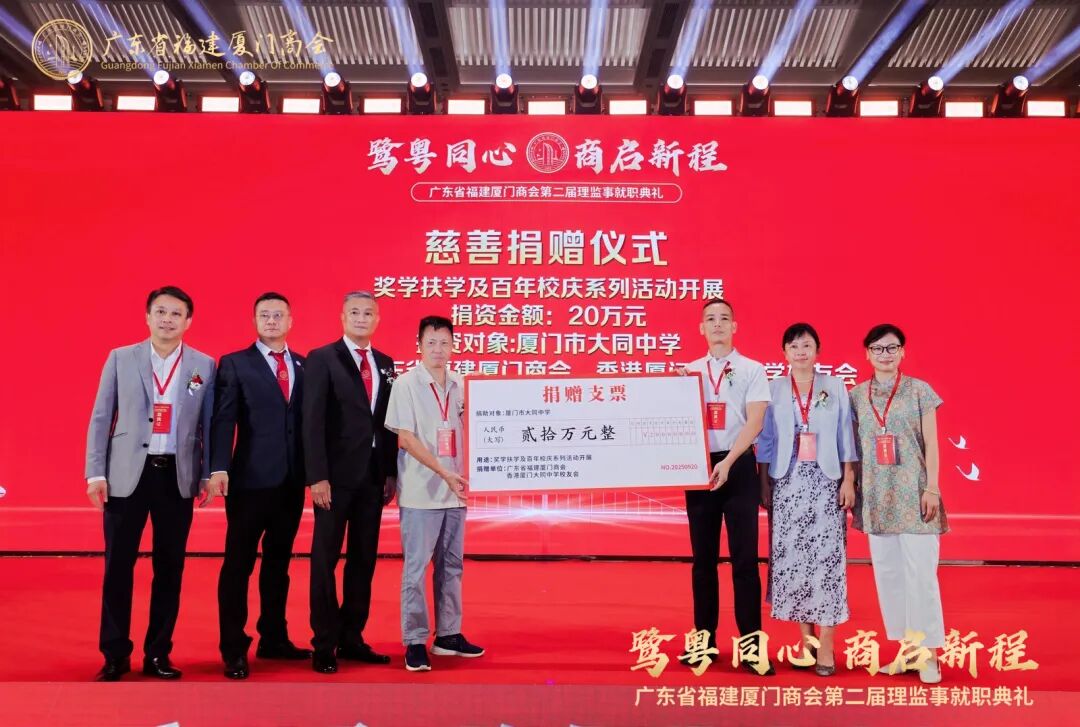 会上还举行了捐赠仪式。广东省福建厦门商会向厦门市大同中学捐赠20万元,向厦门市翔安区启航学校捐赠5万元,向厦门市同安区禾山小学捐赠5万元。